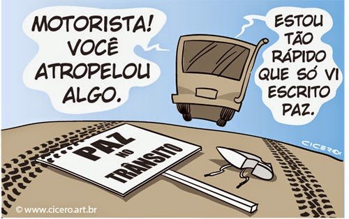 O trânsito brasileiro é o espelho de nossa cultura como nação. O governo aciona embaixadas para salvar da condenação criminosos condenados em outros países. A nossa Justiça se abre para todo e qualquer recurso, mesmo em casos já julgados e condenados na instância mais alta do próprio Judiciário. Quando uma pessoa abre a boca para criticar a flacidez de nossas leis, logo é criticada por uma legião de cidadãos que acham que tudo é rigoroso demais, que tudo é duro demais. Mas no trânsito não é assim. Não tem mais mais mais. Quando maus motoristas, acostumados ao tudo pode, tudo é permitido de nossa cultura como nação, se deparam com postes, com outros carros na contramão, com obstáculos “colocados” no meio do caminho e se esbarram numa lei que nem os brasileiros com toda a sua brasilidade negativa conseguem suplantar: a lei da física que diz que dois corpos não podem ocupar o mesmo espaço ao mesmo tempo. É uma lei dura, mas é lei. Daí morrem e se matam mais de 60 mil pessoas por ano, todos os anos, vítimas da nossa estupidez, da nossa falta de bom senso, nosso descaso com educação. Se soubéssemos respeitar leis, sofreríamos menos.